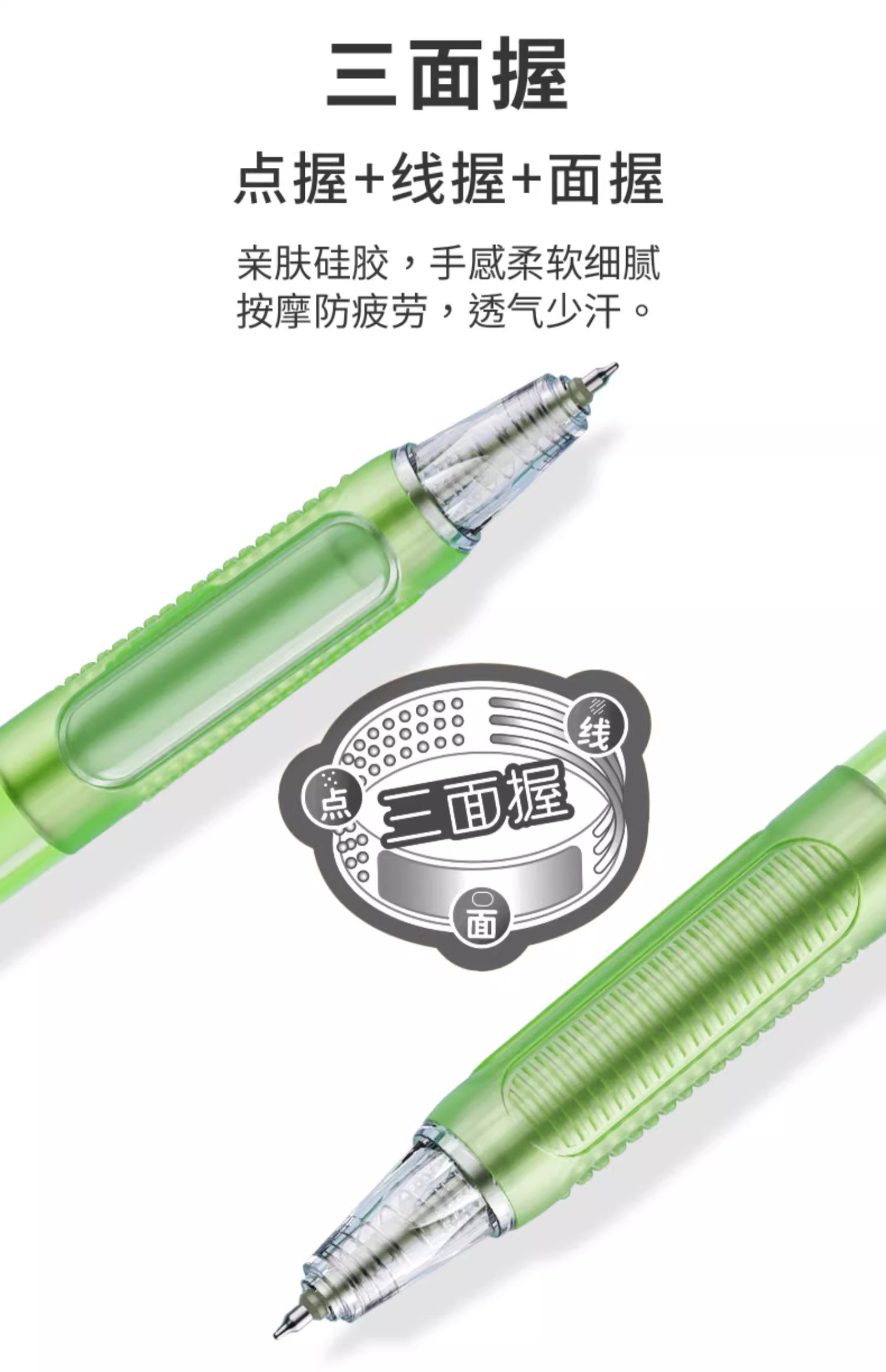 产品描述:三重握感,缓解书写疲劳